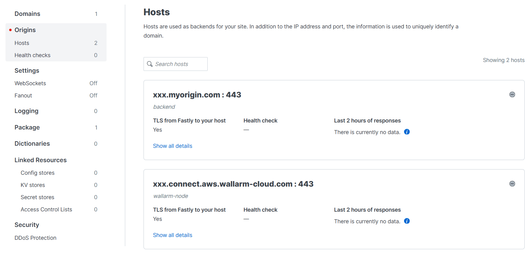 For proper traffic routing for analysis and forwarding, you need to define the Wallarm Node and backend hosts in the Fastly service configuration: