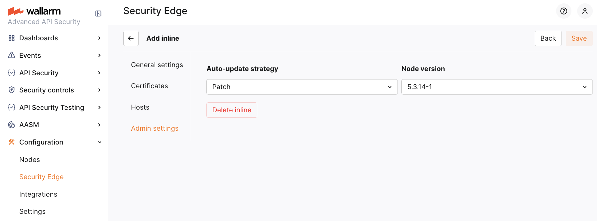 Manage the Security Edge Inline deployment from the Wallarm Console by updating configuration settings, upgrading Node versions, monitoring status, and deleting the deployment.